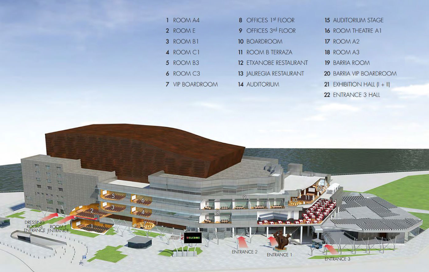 En consonancia con la arquitectura contemporánea del nuevo Bilbao y condecorado como Mejor Centro de Congresos del Mundo en 2003, el Palacio Euskalduna, diseñado por Federico Soriano y Dolores Palacios, es, sin lugar a dudas, un lugar excelente para cualquier celebración. A lo largo de su historia, la sede ha acogido una amplia variedad de eventos, desde conciertos de ópera y ballet a los últimos y más actualizados eventos de innovación y congresos de negocios, gracias a su gran capacidad y sus exclusivas características.